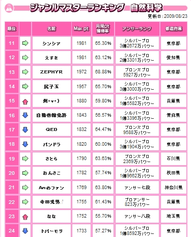 朝は、自然科学をなげる方が一番多い時間帯です(その分、自然科学超人も多いのですが……)朝に、ささで押すのは久々(8/1以来)ですね。