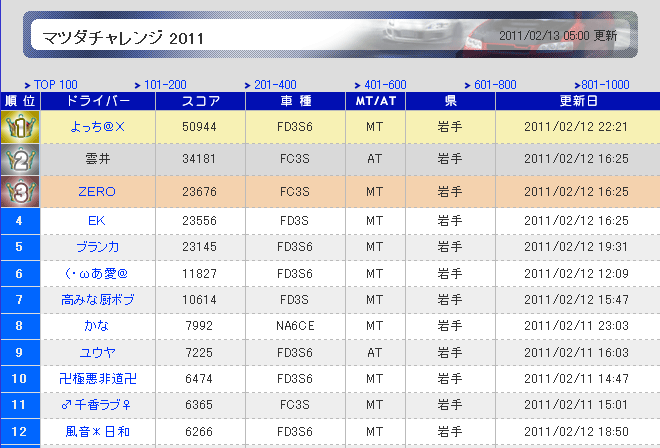 マツダチャレンジ2011<赤城>>岩手2位(FC3S)