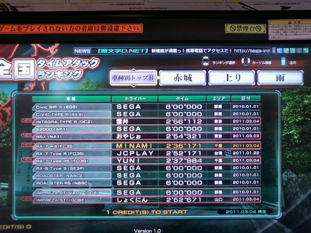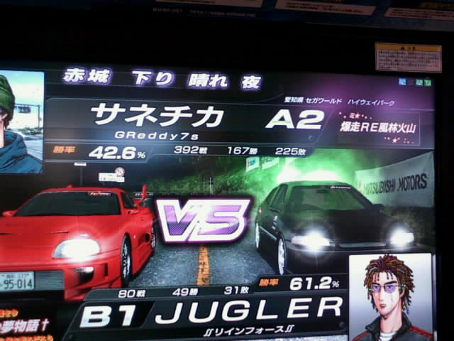 秋名/上り/晴/3'18"919/雨/3'26"457